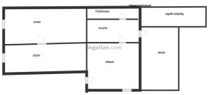 A lakás helyiségei: 2 szoba ( egymásba nyíló ), előszoba, fürdőszoba ( zuhannyal ), konyha.